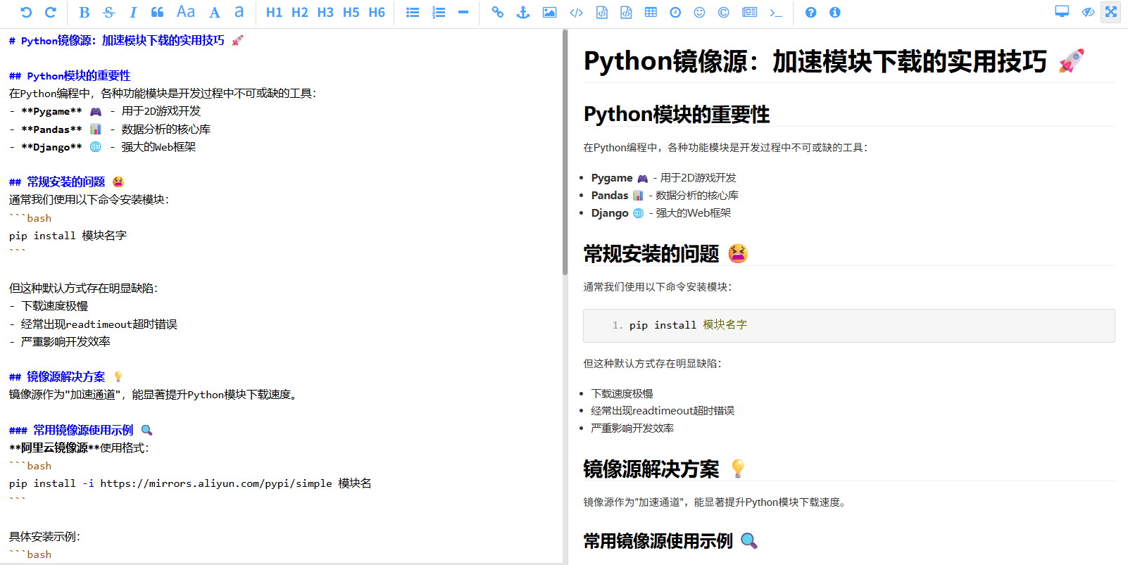 最有效且最终的解决方案是使用 Markdown 插件编译器,它能完美解决上述所有问题!下面简要介绍在 Python Web(Django)框架中安装此编译器的流程和方法。