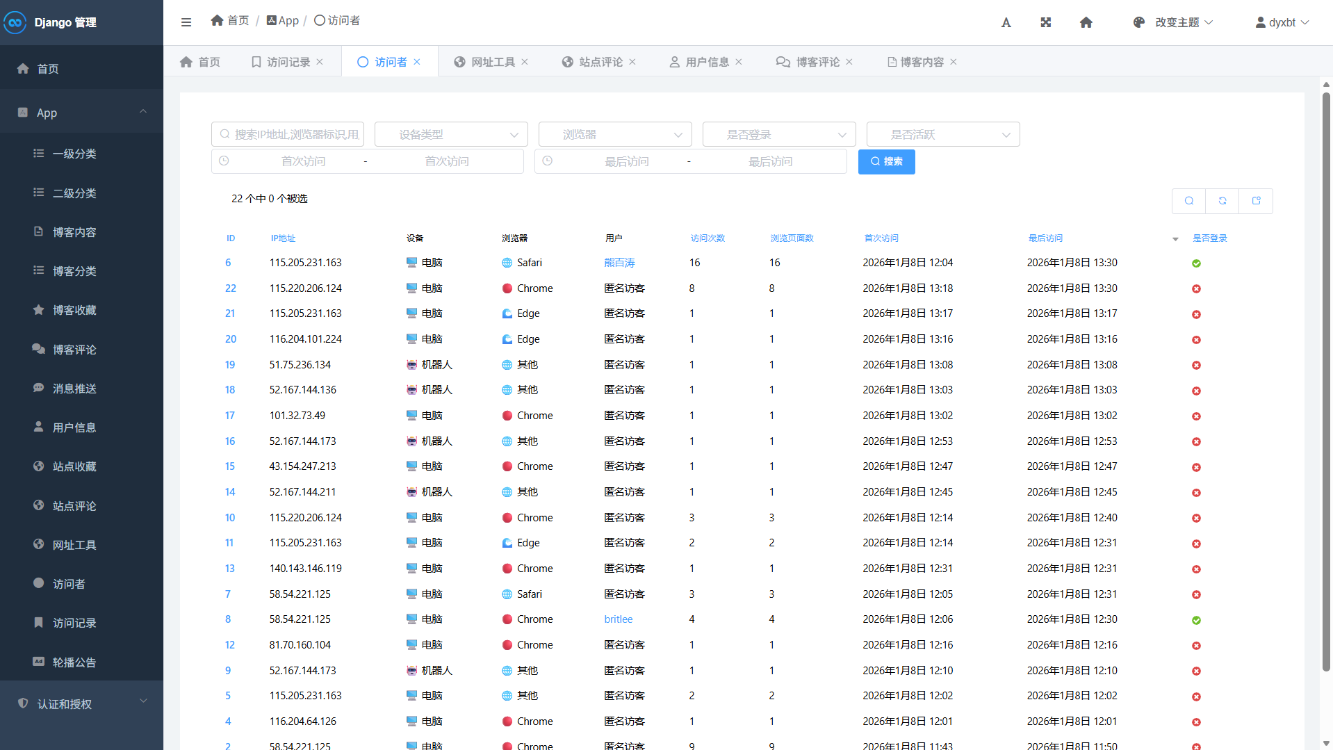 为了解答这些疑问,我决定在 Django 项目中实现一套完整的访客追踪系统,将访问数据可视化地呈现在后台。经过反复调试与优化,这个功能终于成功上线!现在,就让我与你分享这段充满挑战与成就感的开发历程。